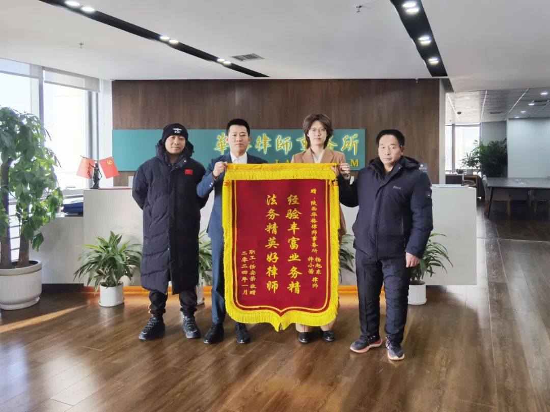 1月22日下午,任先生将一面书写着“法务精英好律师、经验丰富业务精”的锦旗送到了华格律师事务所,用以感谢我所公共法律事务部许小茜律师与婚姻家事部杨旭东律师提供的优质法律服务,表达了对两位律师敬业精神和专业素养的充分认可与信任。