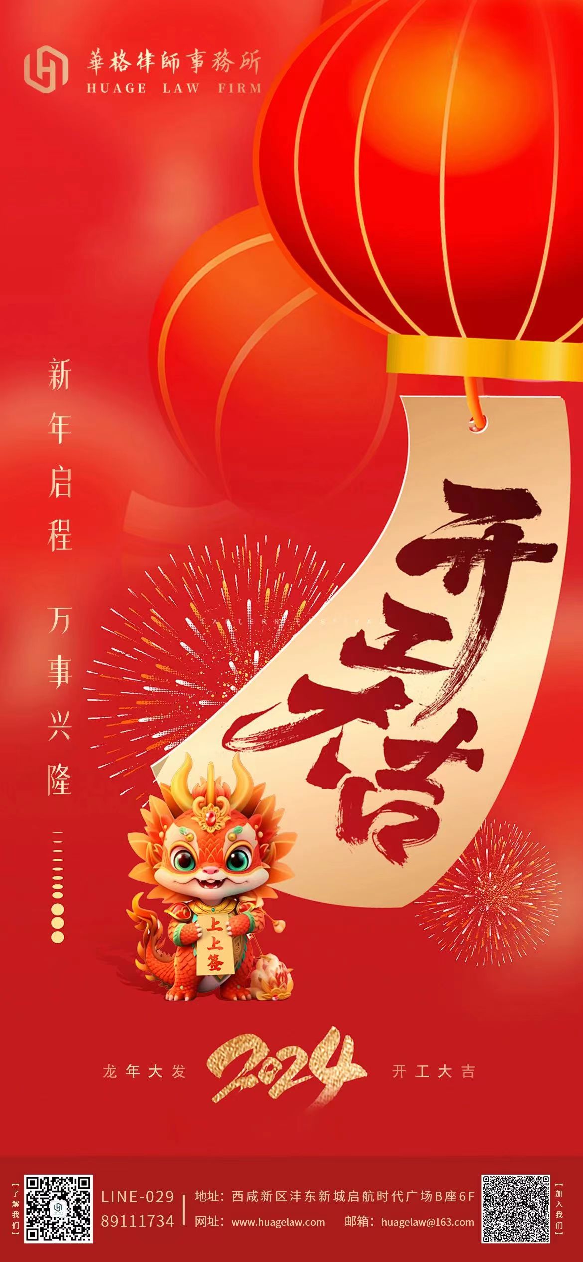 最后,希望大家在新的一年里,龙行龘龘、前程朤朤、事业燚燚、生活鱻鱻!华格律师现已到岗,所有工作均已正常运行,感谢一直关注我们、选择我们、支持我们的客户朋友,祝新年启程,万事兴隆,二零二四,让我们再次携手并进,共创佳绩!