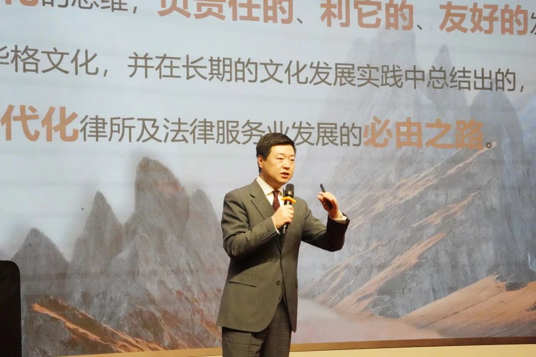 华格律师党支部书记、律所主任、高级合伙人李涵宇致辞,并做2024年度规划。在致辞中,李主任提出共建《华格宣言》的倡议,并对华格宣言的内涵和意义进行了详细阐述,期盼全所同仁共创华格模式,共建华格体系,共同书写并践行《华格宣言》。宣言不只是口号,还须有更加清晰的行动目标,随后李主任对华格律所的五个“三年计划”和华格的中远期目标向全所同仁进行了解读。李主任强调,2024年律所要在文化、组织、人才、分配等方面加强投入和改革,注重对北京、宝鸡、武汉、银川等地分所的管理、筹备和建设探索,将业绩建设作为2024年的工作重点,多渠道、多措施并举冲击更高业绩、服务更多客户,从而在激烈的市场竞争中取得胜利。
