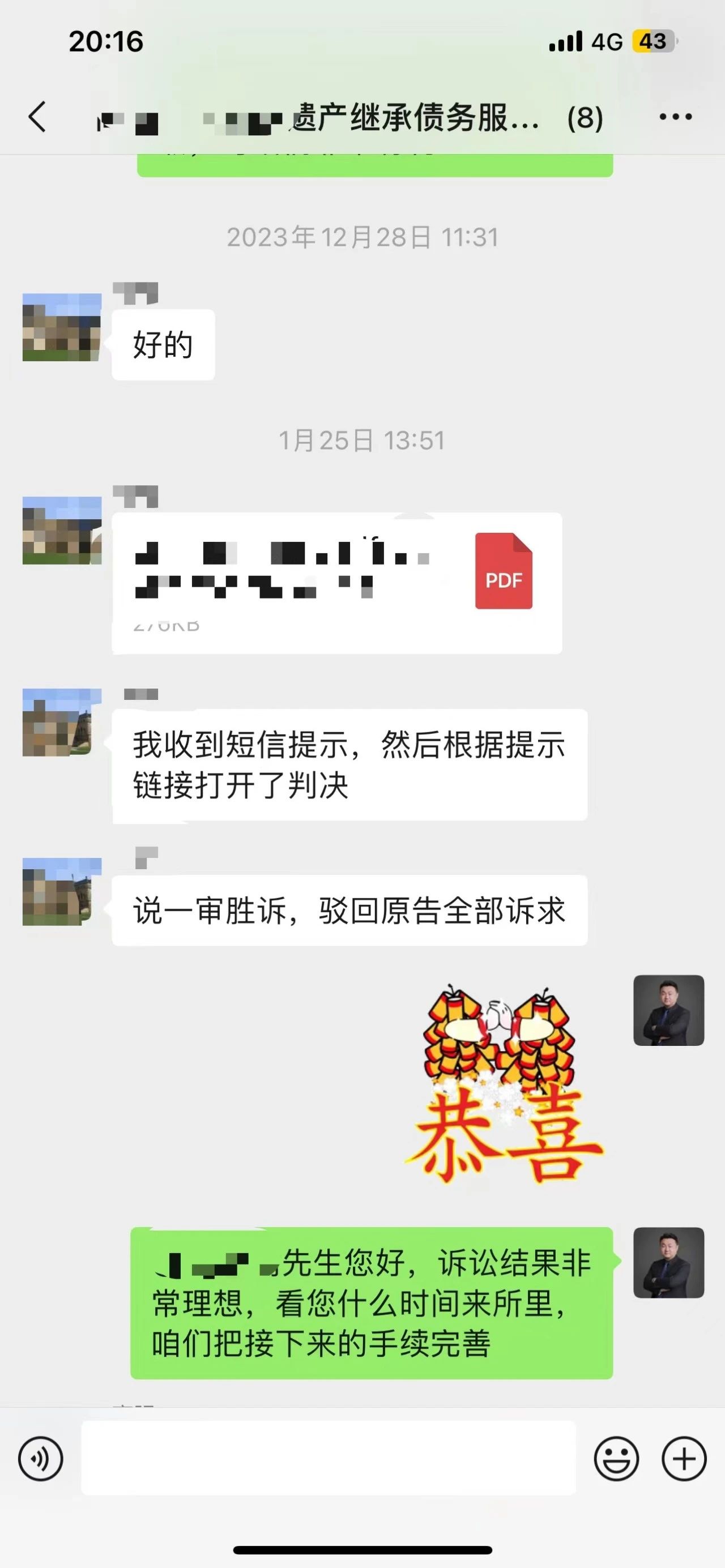当事人高先生母亲去世,留下遗产商品房一套,在高先生准备去办理继承的时候,多年未见的一个远房亲戚突然出现,出示转账记录,聊天记录,收条等证据,说当事人高先生的母亲田某生前欠她一笔资金,连本带利150万左右,要求高先生先清偿其母亲田某生前债务才能够办理继承,并将高先生一纸诉状告到法院,高先生收到法院传票后,手足无措,多方奔走,对比多家律师事务所提出的诉讼思路后,决定委托华格律师事务所应诉。
