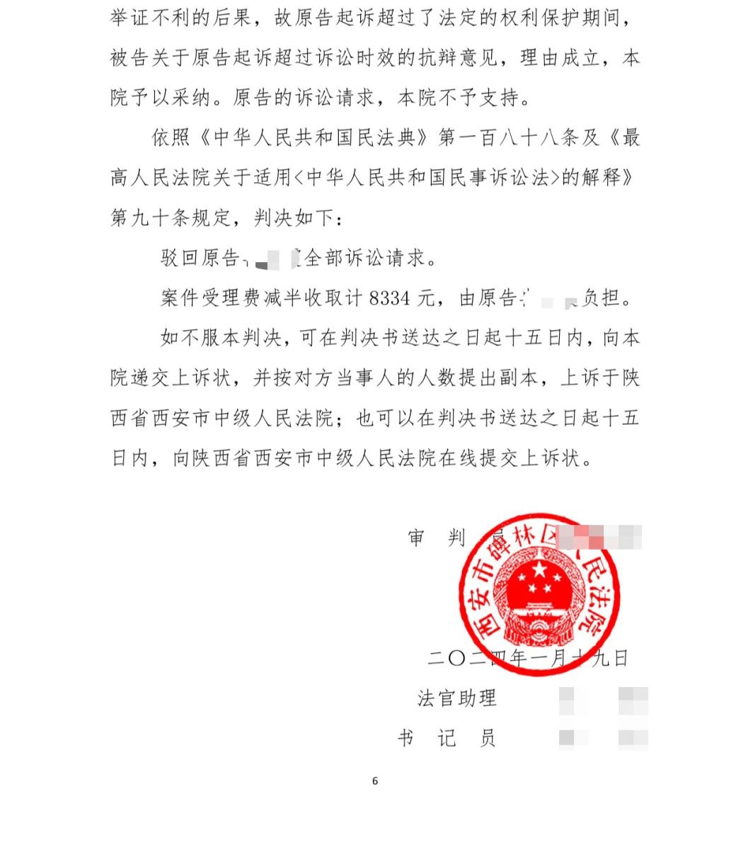 在法院开庭审理后,华格律师事务所首席律师董颖,副首席律师李宁据理力争,提出抗辩理由,并且因为时间久远,案件超过了法定诉讼时效,最终驳回了对方的诉讼请求。