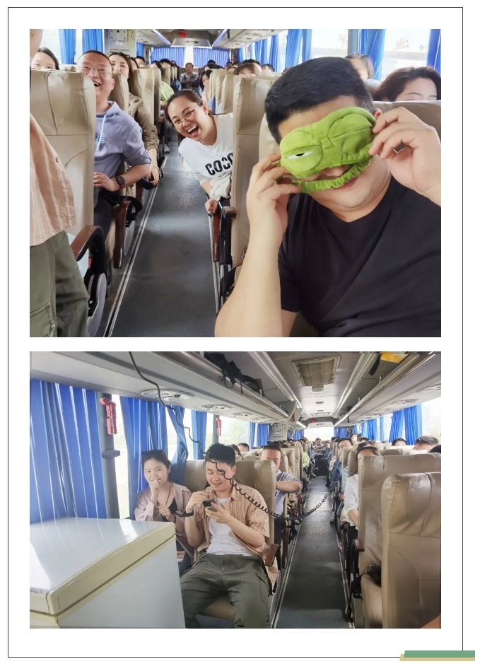 迎着朝阳出发,大家满怀期待地齐聚一堂,共同踏上了这次充满活力的团建之旅。随着“车厢KTV”的开启,大家纷纷化身KTV小曲库,头脑风暴、团队协作、友情帮扶...沉浸在音乐的世界中,享受着这难得的放松时光。紧接着,“听声识人”小游戏更是将车厢内的氛围推向了高潮。这个游戏不仅考验了大家的听力和记忆力,更增进了彼此之间的了解与默契。大家笑声不断,互相调侃,彼此之间的距离也在游戏中逐渐拉近。