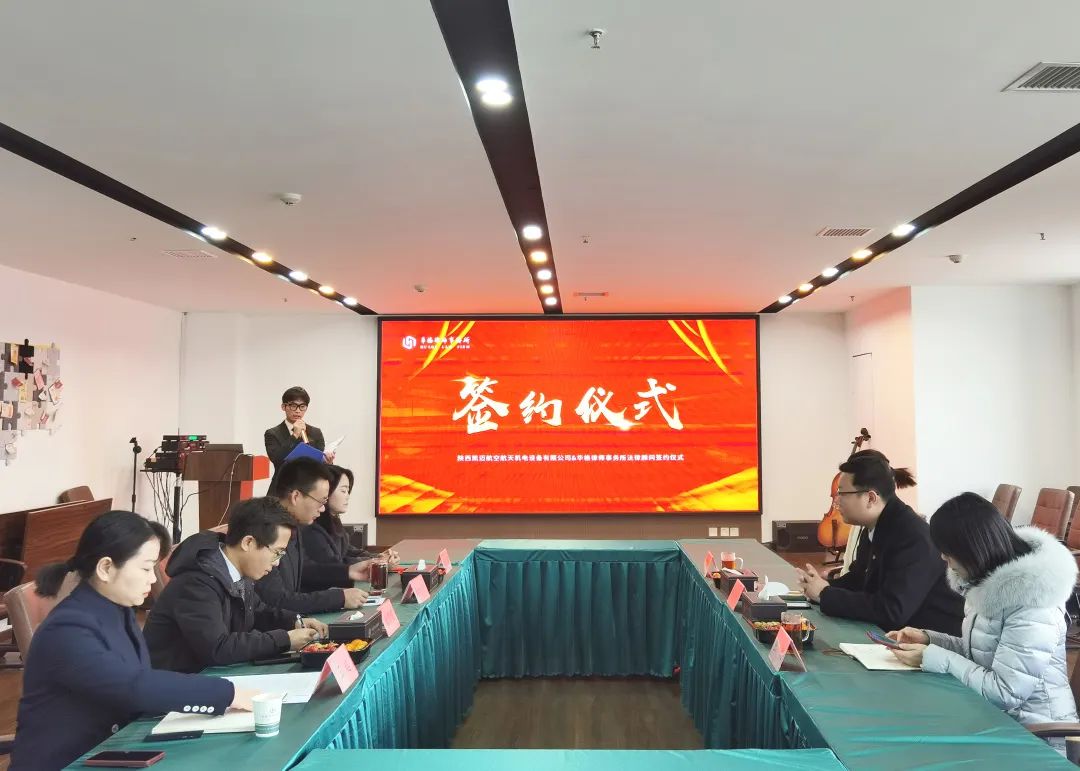 2024年1月24日10时,华格律师事务所与陕西凯迈航空航天机电设备有限公司签约仪式顺利举行。陕西凯迈航空航天机电设备有限公司总经理张崇健,综合管理部部长张敏,人事行政专员黄飞飞、华格律副主任李帅欣、袁霄霄,律所合伙人陈丹、王起参加。